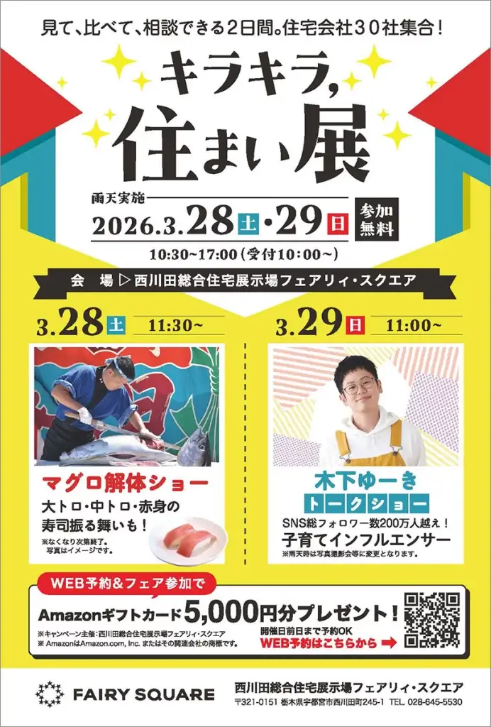 WEB予約+「キラキラ、住まい展」参加で、Amazonギフトカード5,000円分プレゼント!