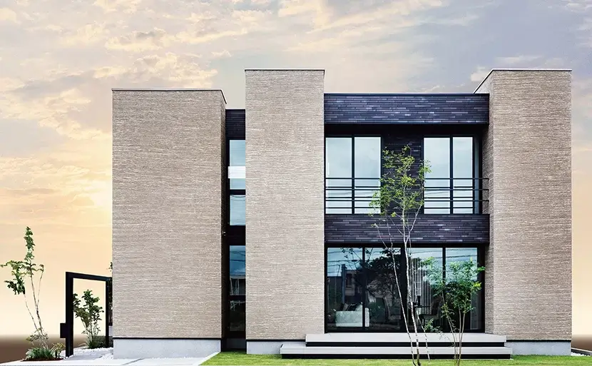 オーダーメイドならではの心地よさをより多くの人に届けたい。暮らし易く、美しい、住まい手にしっくり馴染む住まい。これは栃木ハウスの提唱する家づくりのコンセプト。デザイナーの描く独創的な設計力で多くの人々を魅了してきた同社。こちらで紹介する住まいも、オーナーの想いをデザイナーが汲み取り、潜在的な要望までも形にした一邸だ。見るものを魅了してやまないモダニズムを追求した外観デザイン。その美しさの秘密は、水平と垂直のシャープなライン。無駄な装飾を無くすことによって、ラインが際立ち端正なフォルムをつくり上げる。