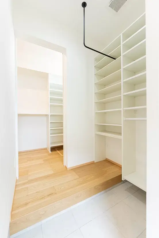 玄関・LDK・水まわりを繋ぐ回遊家事ラク動線。屋根裏にも収納を設けた平屋の住まいです。