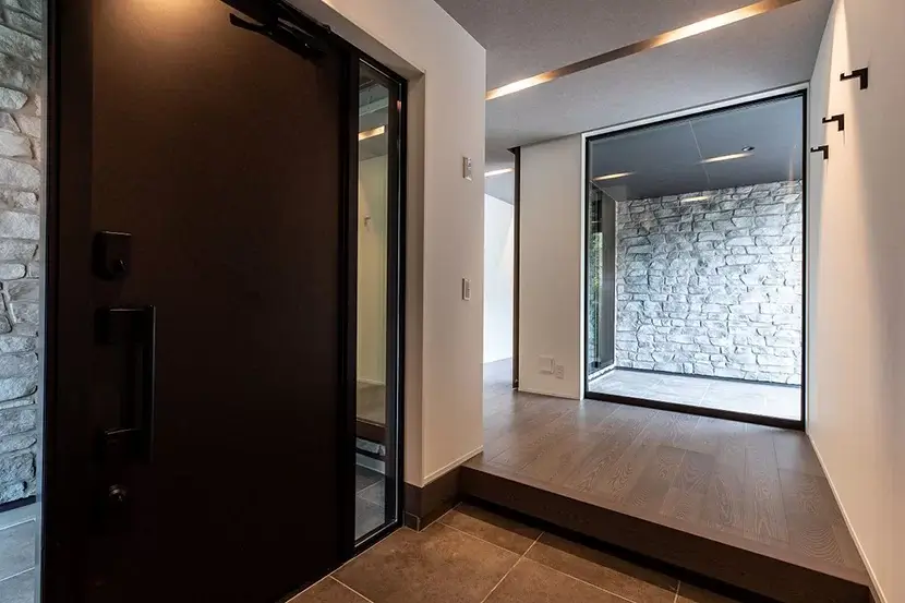 内と外の統一感を持たせた玄関ポーチとエントランス